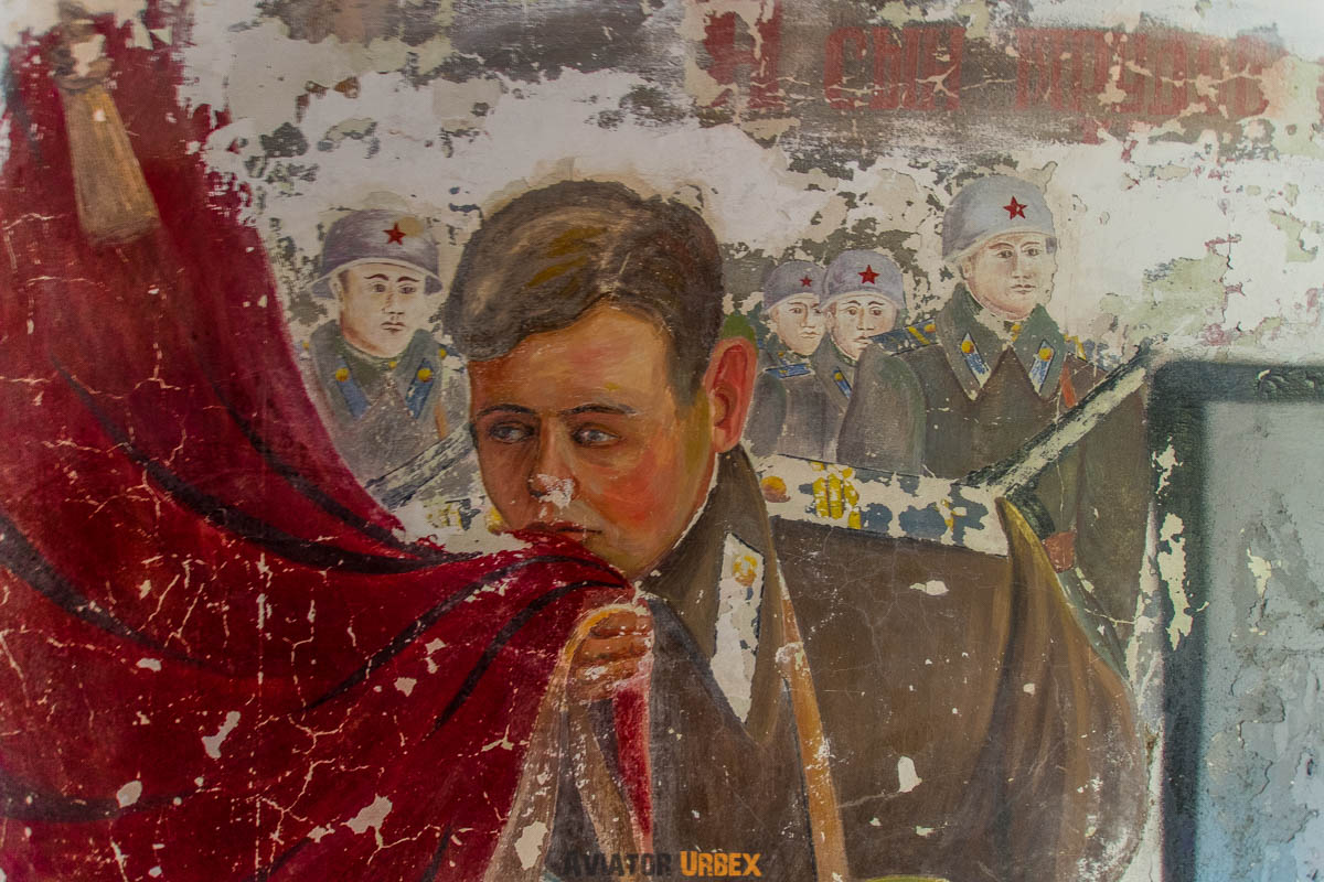 W lesie wciąż można znaleźć ślady dawnej epoki – radziecki mural, a nawet pomnik Lenina, który udało mi się odnaleźć po długich poszukiwaniach między drzewami.