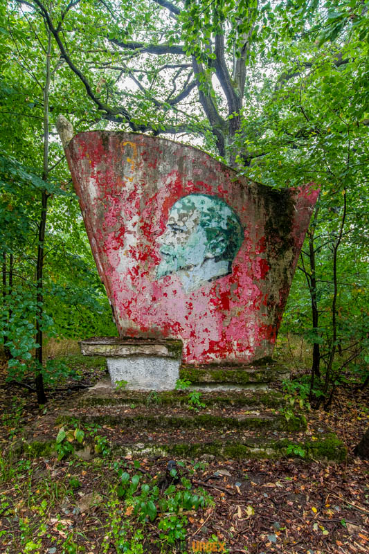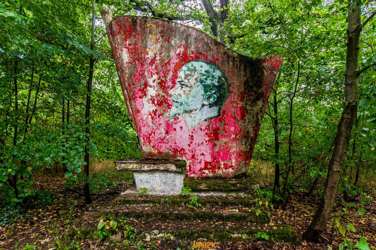 W lesie wciąż można znaleźć ślady dawnej epoki – radziecki mural, a nawet pomnik Lenina, który udało mi się odnaleźć po długich poszukiwaniach między drzewami.